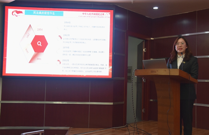 11月23日,甘肃钢铁职业技术学院举办《民法典》专题讲座,邀请了基础部思政教研室张欣主任为全院教师作专题讲座。