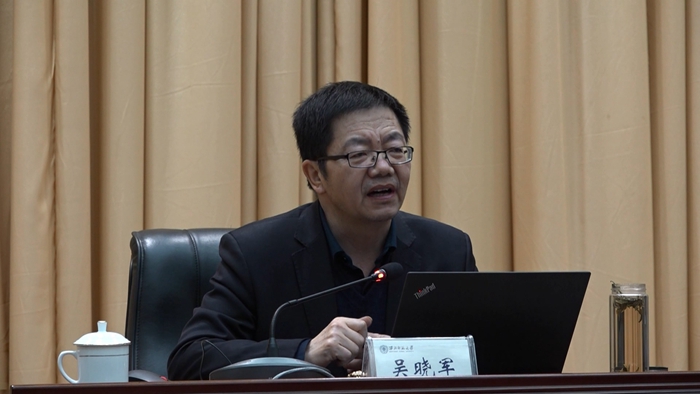 4月15日,甘肃省高校系统党史学习教育宣讲在西北师范大学开讲,省委宣讲团成员,省委党校(甘肃行政学院)社会和生态文明教研部吴晓军教授集中为全省高校系统做专题宣讲。省委教育工委专职副书记、省教育厅党组成员张晓东主持宣讲报告会,省属35所高校同设分会场,线上线下共有八千余人参会。