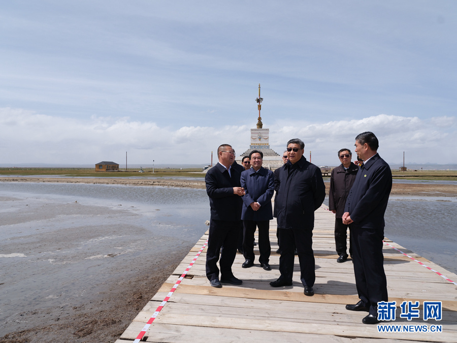 6月7日至9日,中共中央总书记、国家主席、中央军委主席习近平在青海考察。这是8日下午,习近平在海北藏族自治州刚察县青海湖仙女湾考察。新华社记者 申宏 摄