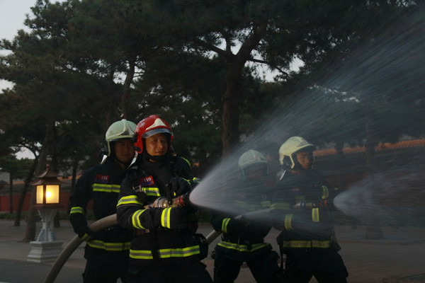 2014年蔡瑞调到特勤站任职,他发现这里没有艰苦卓绝的灭火战斗,没有生死一线的救援时刻,更没有宽敞方便的营房;有的是每年近万公里的巡逻检查,有的是每年上百次的执勤安保任务,有的只是在故宫夏注水、冬凿冰、春除草、秋清叶。