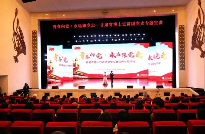 4月29日,一场别开生面、规模宏大的党史专题宣讲示范活动在甘肃中医药大学举行,活动以庆祝建党百年为主线,聚焦“青春向党,永远跟党走”主题,博士宣讲团4位青年博士分别以《鸿蒙初辟大事变》《改天换地:党在社会主义革命和建设时期完成兴国大业》《风云激荡改革开放 陇原儿女砥砺奋进》《百年党史铸信仰 时代新人展担当》为题,围绕中国共产党的百年光辉历程和取得的伟大成就作了专题宣讲。