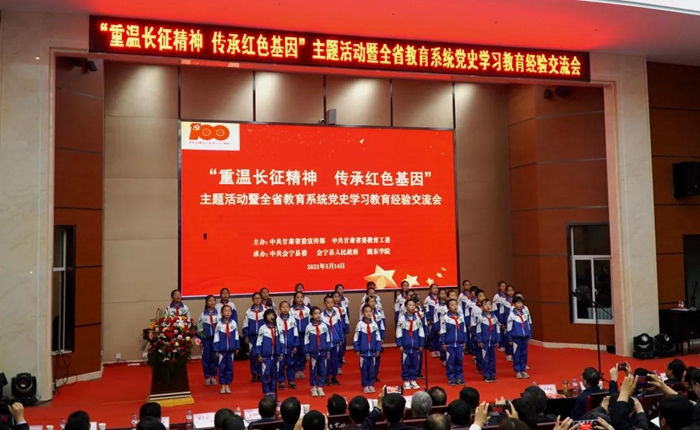 创新丰富学习形式不止于此。省委宣传部、省委教育工委、省教育厅举办了“永远跟党走”——全省高校庆祝中国共产党成立100周年合唱展演暨甘肃省第三届学生合唱艺术节活动,全省共有41所高校参与,开展“传唱经典曲•永远跟党走”红歌传唱接力,共报送参赛作品106首;省委宣传部、省文化和旅游厅、省教育厅、省文学艺术界联合会举办了陇原儿女心向党系列群众文化活动“追寻红色足迹,逐梦砥砺前行”全省红色经典诵读比赛;省委教育工委、省教育厅举办了全省教育系统庆祝建党100周年“红色基因传承行动”成果展。各地各校结合实际组织开展“追寻红色足迹,逐梦砥砺前行”红色经典诵读比赛、“南梁精神进校园”“传承红色基因 争做新时代好少年”“童心向党”“红领巾心向党”等主题系列活动和中小学生艺术展演、作文大赛、书画、手抄报展览等党史宣传教育活动。全省教育系统开展“知、讲、赛、行”为主要内容的四史教育主题活动5000余场次、参与师生1000余万人次,党史学习教育“活”了起来,也“热”了起来,获得喜人成效。