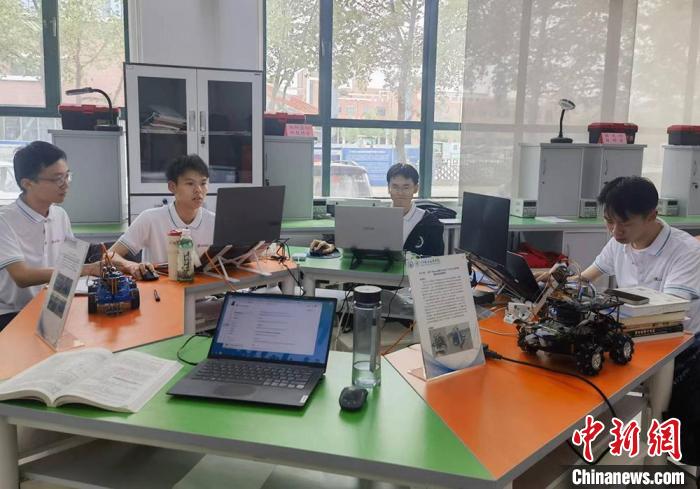 图为兰州理工大学创新创业学院学生探究机器人相关项目。 刘玉桃 摄
