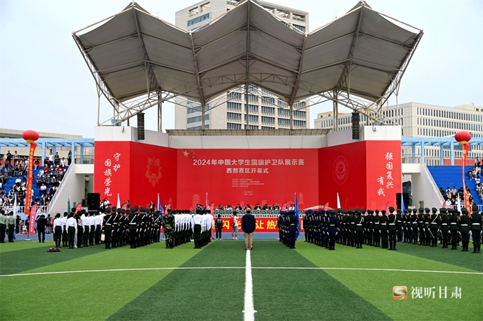 5月18日上午,2024年中国大学生国旗护卫队展示赛(西部赛区)开幕式在甘肃农业大学举行。来自西安交通大学、西南财经大学、内蒙古科技大学、陕西师范大学、兰州大学、西北师范大学、甘肃农业大学等27所高校代表队共计500余名参赛队员、领队、指导教师参加活动。比赛分为甲组(普通组)、乙组(高职高专组),开展升旗展示、队列动作两个项目竞赛。
