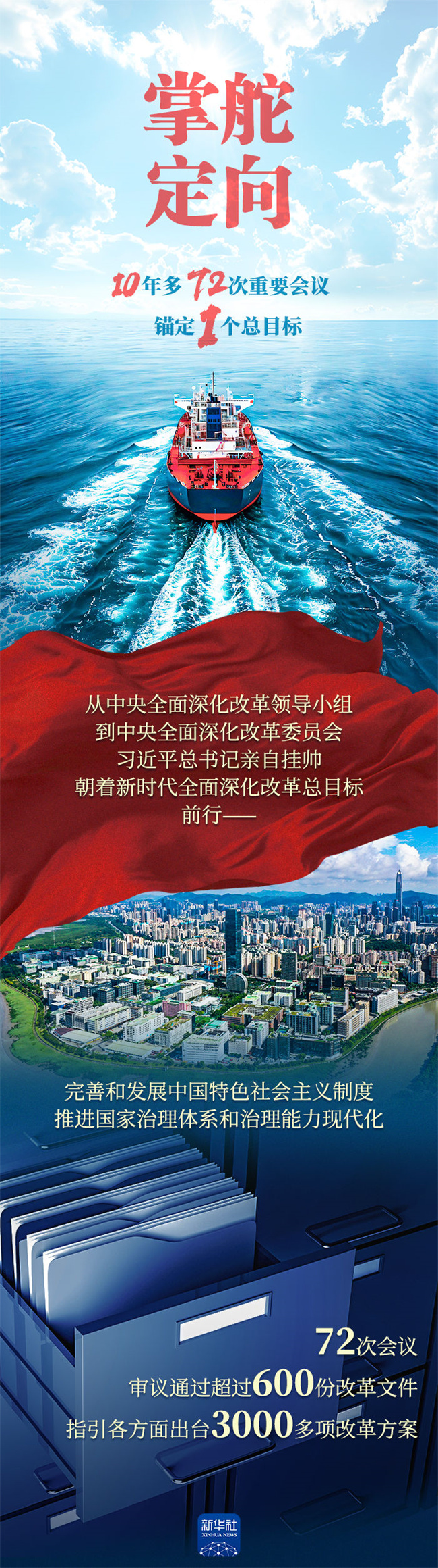 10年多来,这样的会议,习近平总书记主持召开了72次。总体设计、统筹协调、整体推进、督促落实,习近平总书记掌舵领航,中国改革航船沿着正确航线向更深水域、更广天地前进。