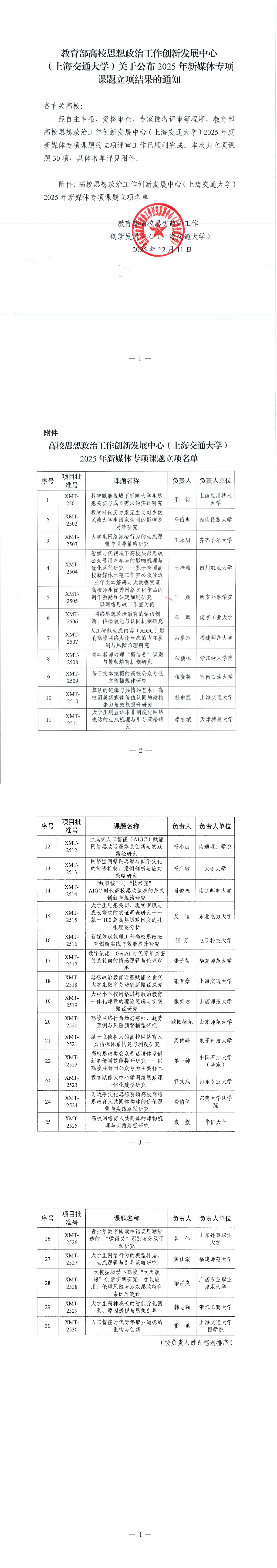 (上海交通大学)关于公布2025年新媒体专项课题立项结果的通知