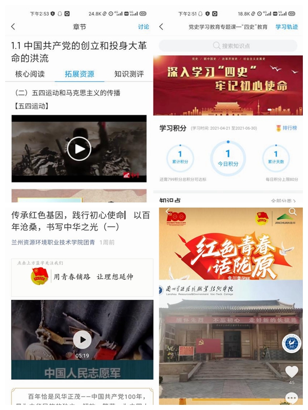 党史学习教育开展以来,兰州资源环境职业技术学院迅速行动,强化安排部署,聚力“线上线下学党史”党史学习教育模式,对措并举、扎实推动党史学习教育校园全覆盖。