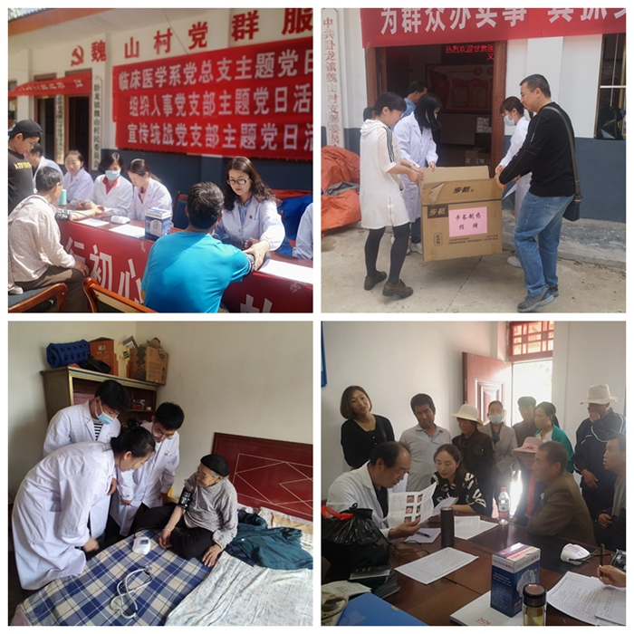 为更好地将党史学习教育推向纵深,认真细致扎实开展好“我为群众办实事”实践活动,切实解决基层群众最直接、最现实的问题,切实把好事办实,把实事办好,办到群众心坎上。学院临床医学系党总支联合组织人事党支部、宣传统战党支部,组织党员师生近30人,于9月12日一大早赶赴学院帮扶点——庄浪县卧龙镇魏山村开展“送医送药下乡、助力乡村振兴”主题党日活动,将党史学习教育、“七一”重要讲话精神、国家最新的农村医疗卫生政策传达到村民心中,将优质医疗服务送到了群众家门口,切实帮助解决群众看病难的问题。