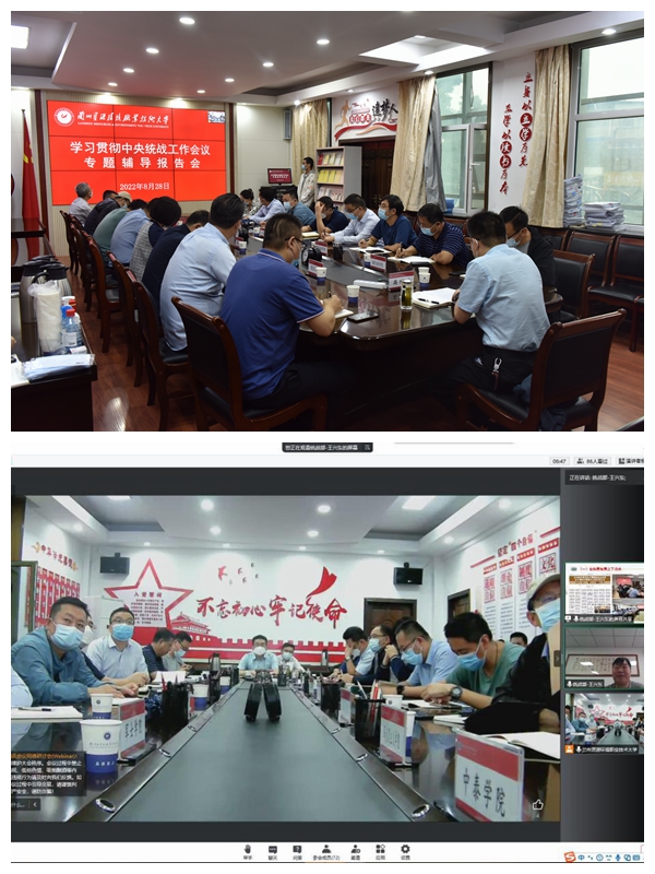 8月28日,兰州资源环境职业技术大学以线上和线下相结合的方式,组织召开学习贯彻中央统战工作会议精神专题辅导报告会。