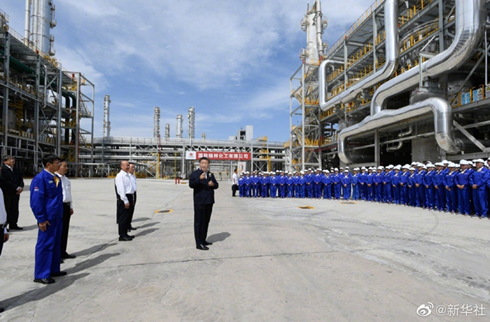 9月13日上午,习近平总书记来到国家能源集团榆林化工有限公司考察,走进中心控制室、来到项目现场,了解煤炭综合利用等情况。他强调,能源产业要继续发展,否则不足以支撑国家现代化。煤炭能源发展要转化升级,走绿色低碳发展的道路。这样既不会超出资源、能源、环境的极限,又有利于实现碳达峰、碳中和目标,适应建设人类命运共同体的要求,把我们的地球家园呵护好。(文字记者:张晓松、朱基钗 摄影记者:李学仁、谢环驰、燕雁)