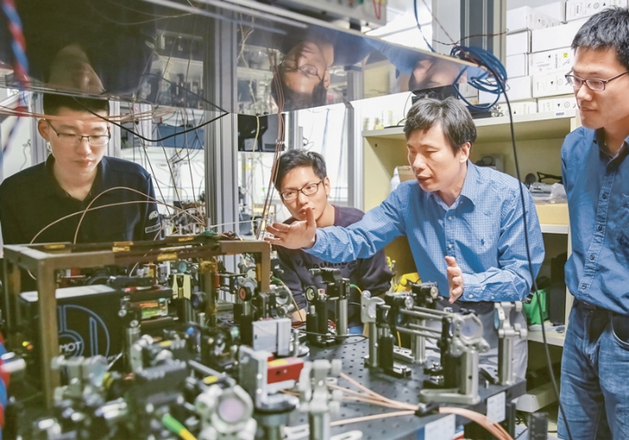 一流大学是国家基础研究的主力军和重大科技突破的策源地,高校要围绕国家重点领域、重点产业,完善产学研联合协同攻关体制机制,让人才在重大科研任务中施展才华、成就事业。清华大学交叉信息研究院在多模量子纠缠数量研究方面取得世界领先水平,该研究对实现量子信息在光子和存储粒子(通常为原子)之间的相干转化有重要作用。图为研究团队的老师和同学们在实验室。 清华大学供图