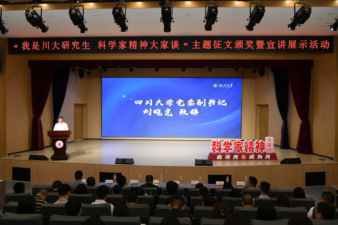 5月30日是第八个全国科技工作者日。当天,“我是川大研究生 科学家精神大家谈”主题宣讲展示活动在四川大学望江校区举行,四川大学党委副书记刘晓虎、学校相关职能部处负责人、各学院副书记、师生代表300余人参加此次活动。活动由四川大学研究生院和研究生工作部主办,旨在大力弘扬科学家精神,涵养优良学风,践行科研诚信,教育引领全校研究生为实现高水平科技自立自强贡献智慧和力量。