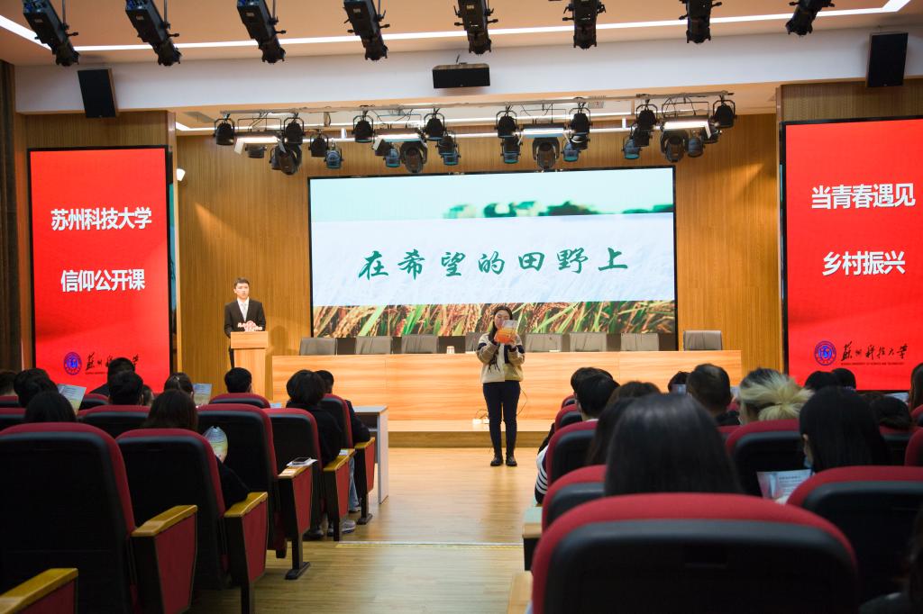 11月15日,由校团委主办、建筑与城市规划学院承办的信仰公开课示范课《当青春遇见乡村振兴》在常熟市蒋巷村开讲。校党委副书记王荣庆,建筑城规 学院党委书记王雨村,校团委副书记周思颖,建筑城规学院党委副书记兼副院长李敏、学工办全体辅导员及100余名大学生聆听了公开课。