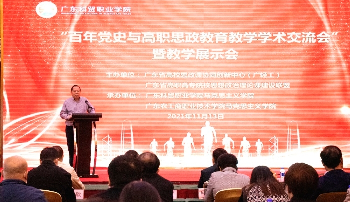 思政课作用不可替代,思政课教师队伍责任重大。近日,在广东省高校思政课协同创新中心(广轻工)、广东省高职高专院校思想政治理论课建设联盟主办,广东科贸职业学院马克思主义学院、广东农工商职业技术学院马克思主义学院联合承办的“百年党史与高职思政教育教学”学术交流会暨教学展示会上,全省100多名马克思主义学院院长与骨干教师代表齐聚广东科贸职业学院清远校区,汲取百年党史力量,共话高职思政教育改革创新。