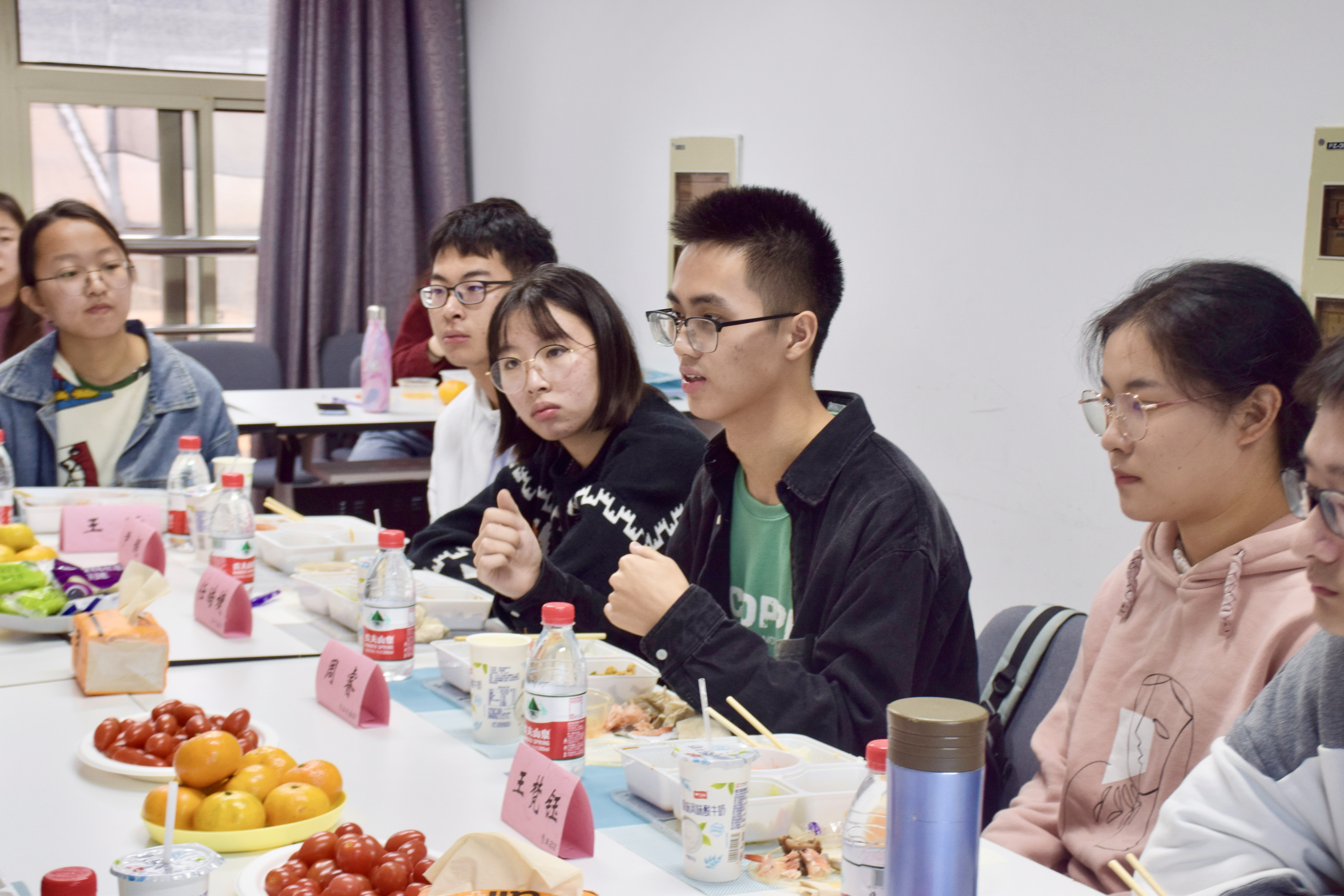 这场午餐会气氛很和谐轻松。不是老师在讲台授课、学生坐在下方听讲,而是所有人围坐在一张桌子,面对着水果零食、闻着饭香,紧张的感觉立刻消失了,心与心的距离也更近了。