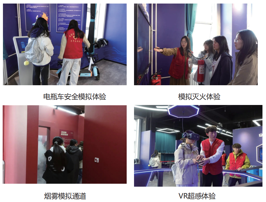 (4) 宿舍安全隐患排查模拟演练:通过莫拟真实宿舍环境,让体验者排查,了解哪些物品在宿舍内可能会出现安全隐患,在使用不当时出现的隐患后果,指导学生正确的使用可能会出现隐患的物品,培养日常安全意识。
