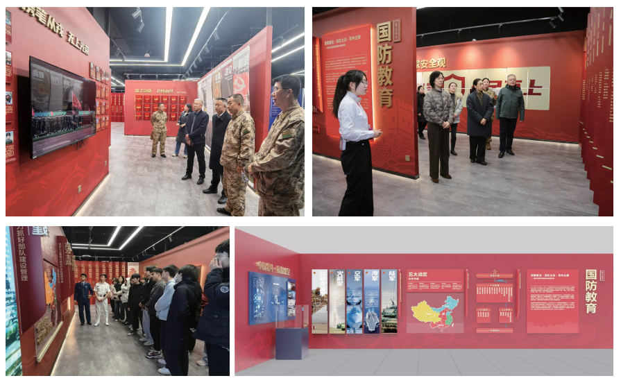 2. 国防教育专区:通过图文并茂,动态展示,实物模型等方式呈现,是学校弘扬爱国主义,增强全民国防观念的核心阵地,通过沉浸式展示将国家安全理念深植人心。展厅通过互动设计,系统呈现国防成就与安全形势,有效唤醒青年学生的忧患意识与使命担当,推动形成全校崇军尚武,关心国防的良好风尚。启迪青年学生认知强国强军重要性,播下爱国报国的种子,为凝聚民族凝聚力,巩固国家安全提供坚实的精神支撑,是铸牢中华民族共同体意识的战略基石。