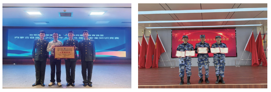 2025年全区大学生国家安全知识竞赛中获“优秀组织奖”;选派6名学生参加内蒙古自治区第二届学生军事训练营,在“国防知识考核”“应急技能比拼”中取得优异成绩(2人获“个人单项奖”)。