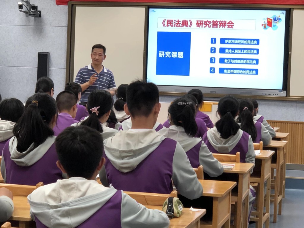为加强对青少年的法律教育,江苏省连云港市新海高级中学思想政治教研组举行研修活动,作为校园普法课与思政课相结合的一种课型尝试,该校思政课老师武兴华老师以“叩问民法典问世”为题做了一堂公开课,受到听课师生的肯定与好评。